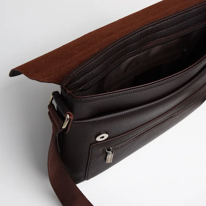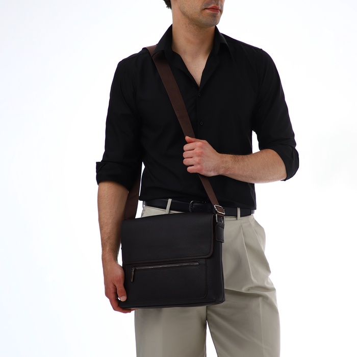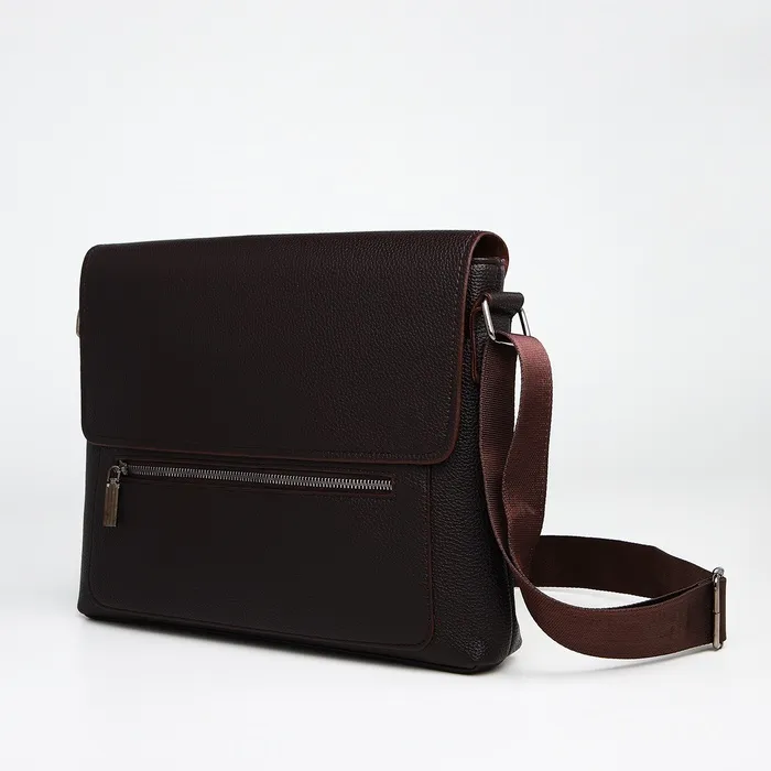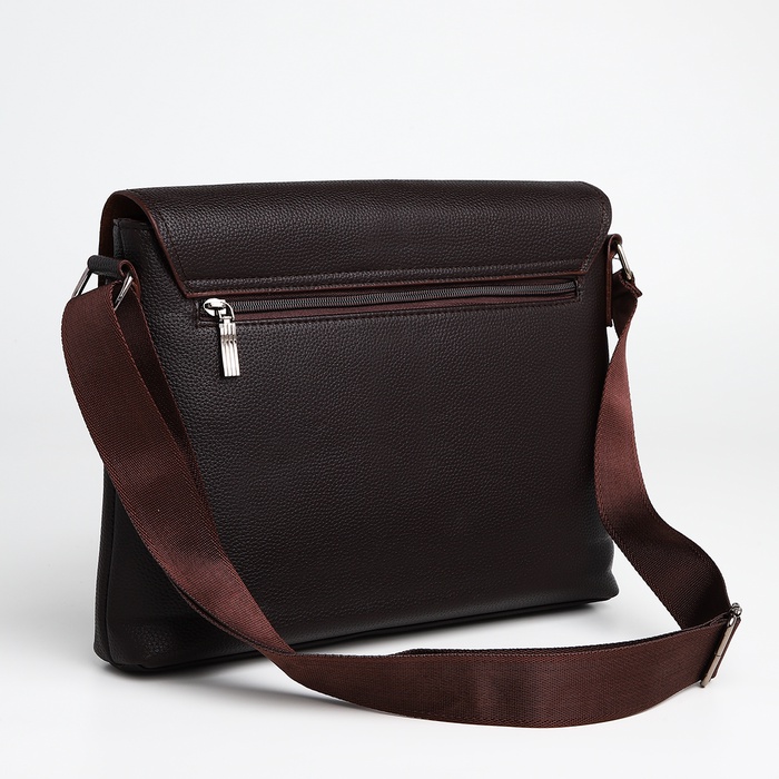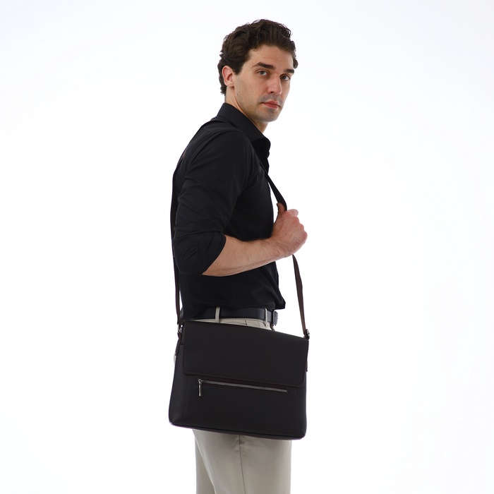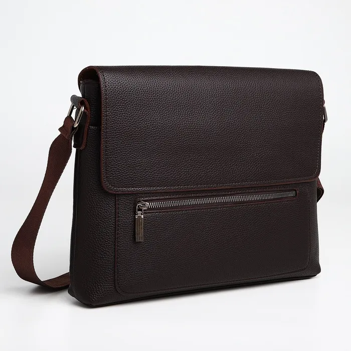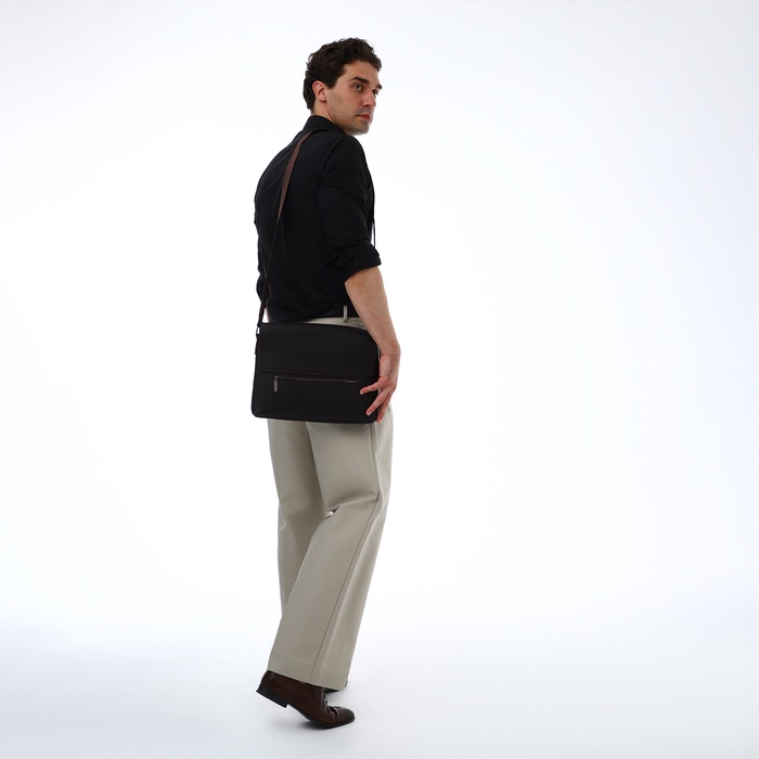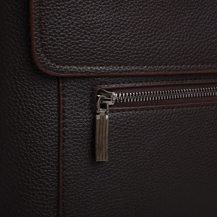 Сумка деловая мужская на молнии TEXTURA, 3 наружных кармана, коричневая — Характеристики