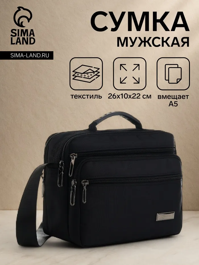 Сумка деловая на молнии, 3 наружных кармана, чёрная — Характеристики