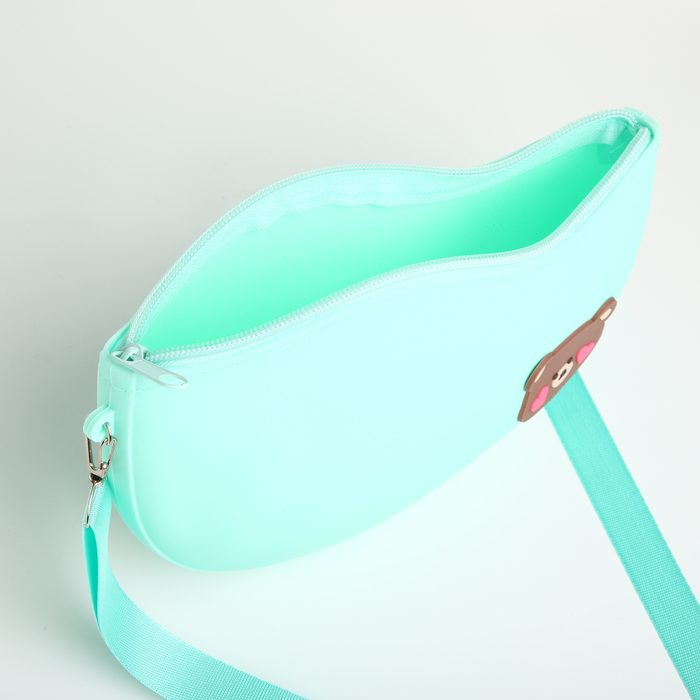 Эта изумительная бирюзовая сумочка для девочек станет отличным акцентом к любому наряду. Изготовленная из мягкого силикона, модель прекрасно удерживает форму и одновременно обеспечивает комфортную посадку. Дизайн сумки украшает изображение милого медведя, который обязательно вызовет улыбку у юных модниц.