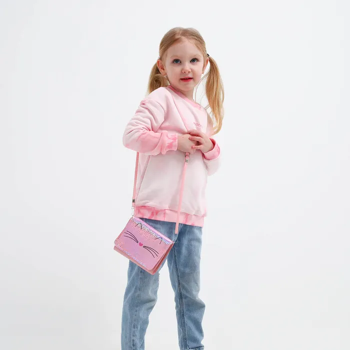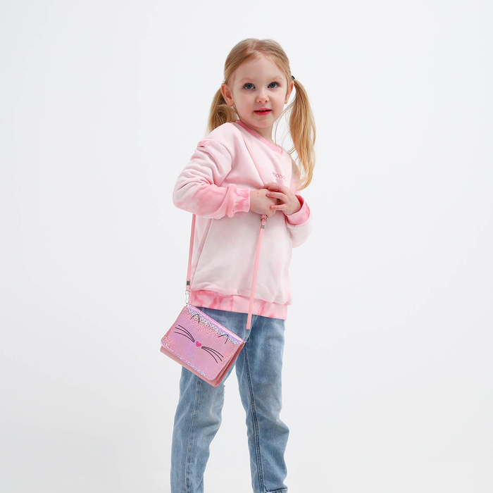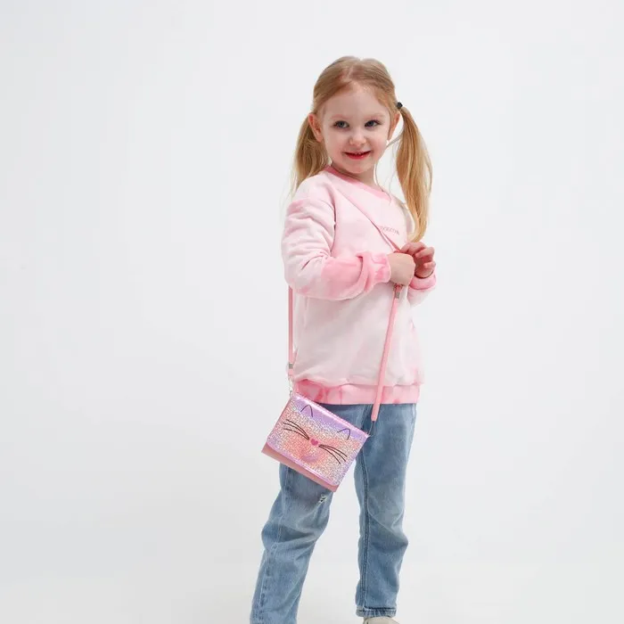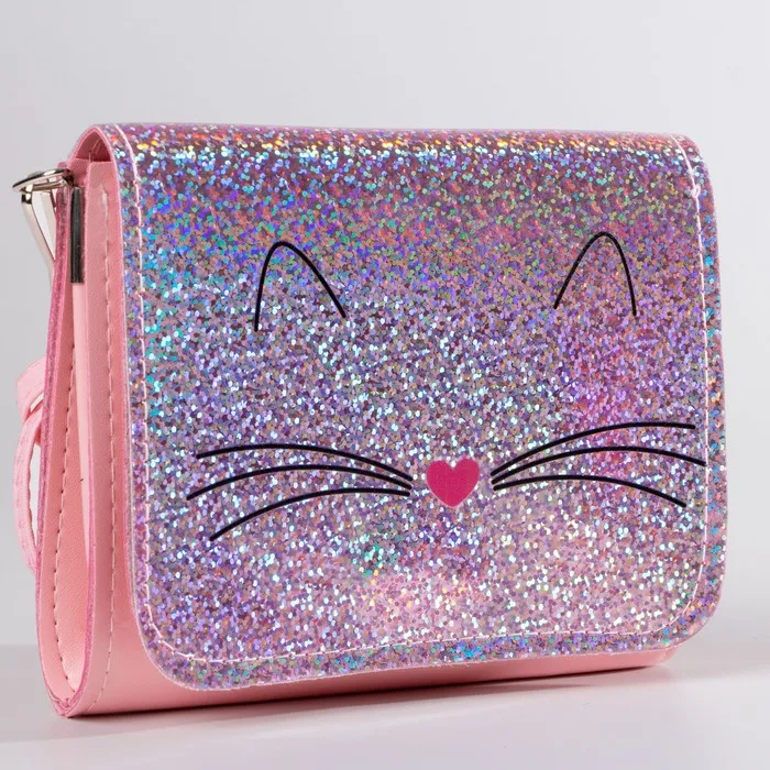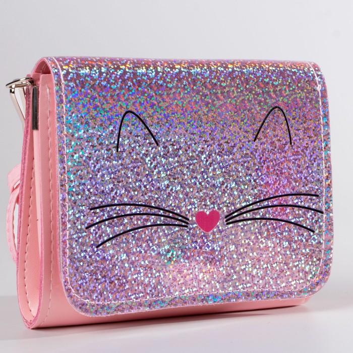 Сумка детская для девочки «Блестящий котик», на клапане, розовая, 15×4×12 см — Характеристики