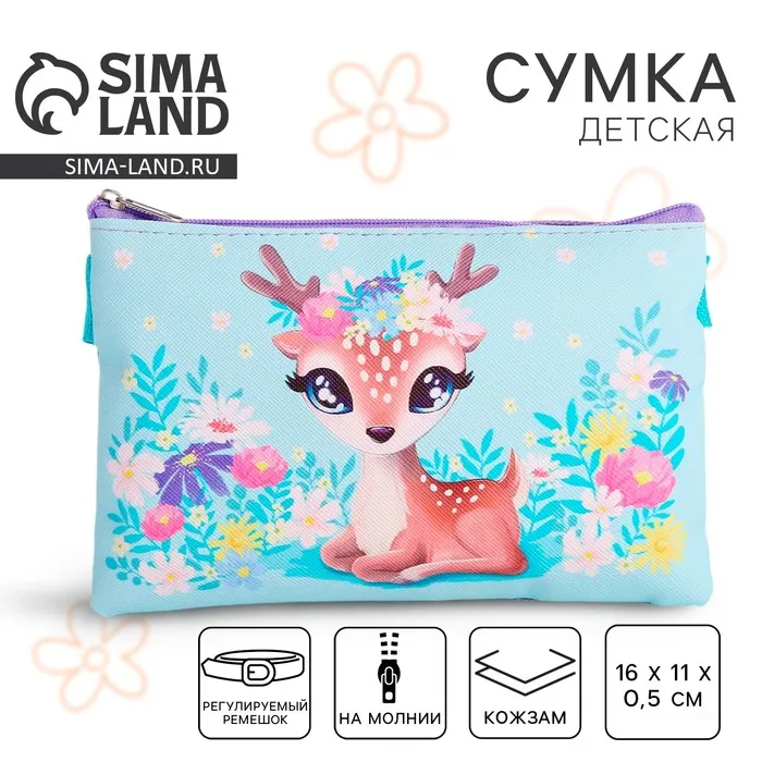 Сумка детская для девочки «Добрый олененок», эко-кожа, голубая, 16×11 см — Характеристики
