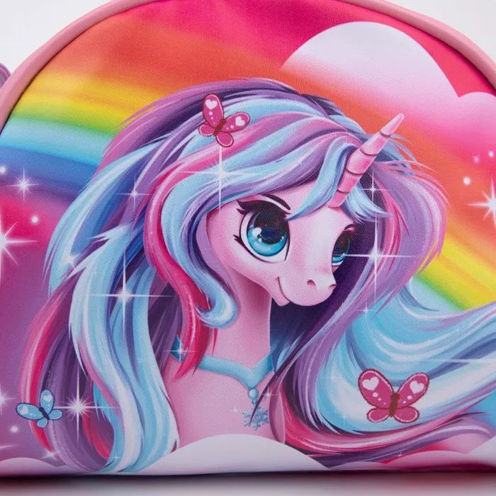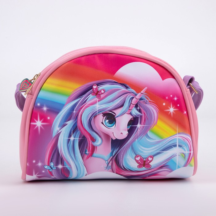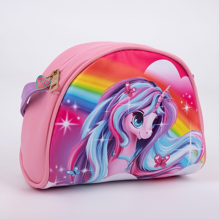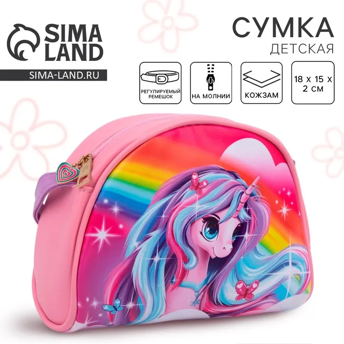 Сумка детская для девочки «Единорог на радуге», искусственная кожа, с брелоком, 18×15×2 см — Характеристики