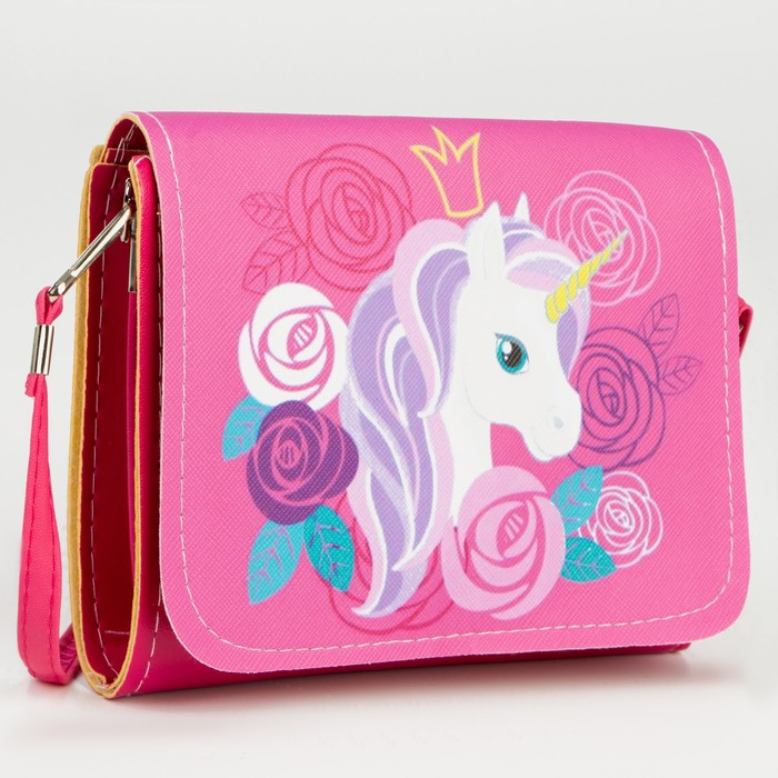 Сумка детская для девочки «Единорог в цветах», на клапане, розовая, 15×4×12 см — Характеристики