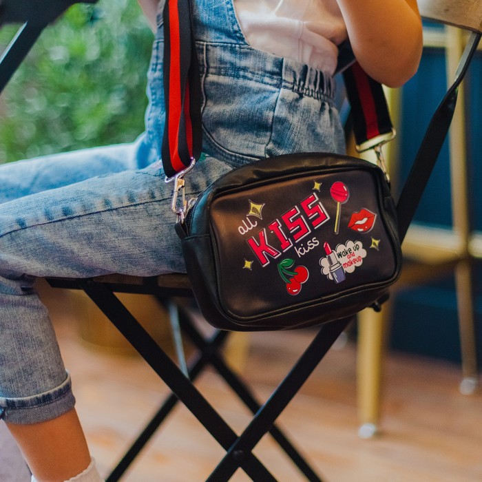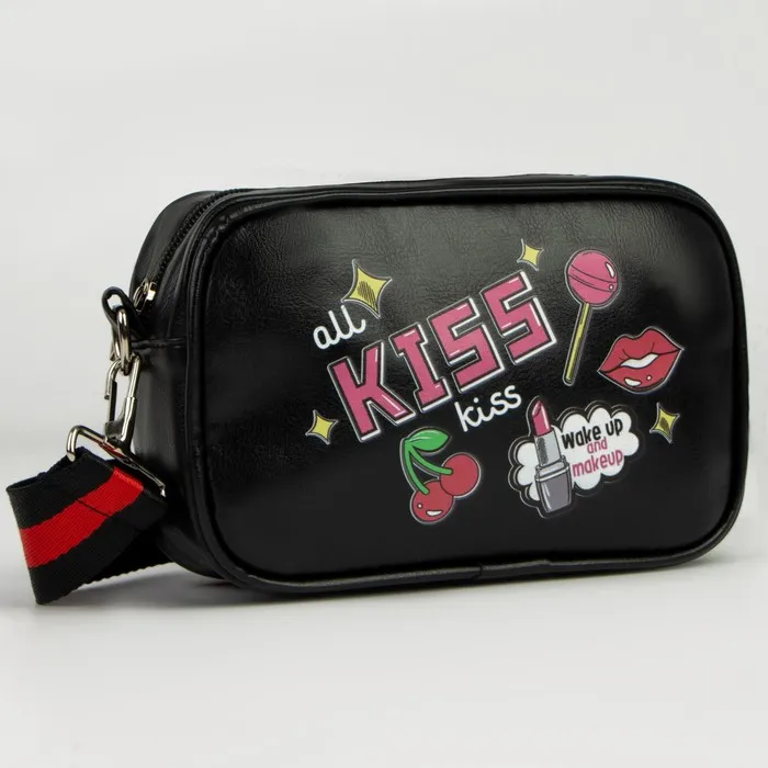 Сумка детская для девочки Kiss, искусственная кожа, на ремешке, чёрная, 18×6×11 см — Характеристики