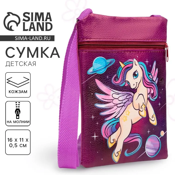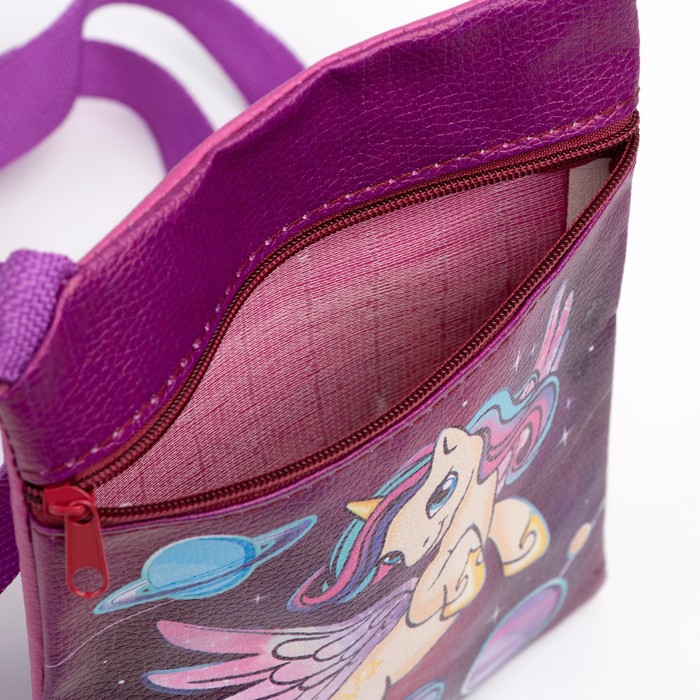 Сумка детская для девочки «Космический единорог», эко-кожа, фиолетовый, 16х11 см — Характеристики