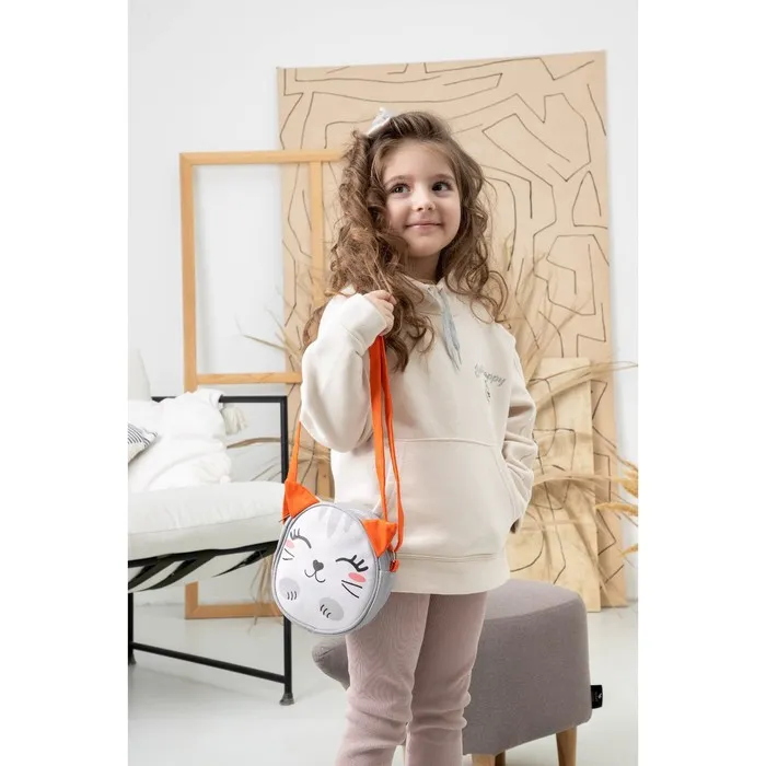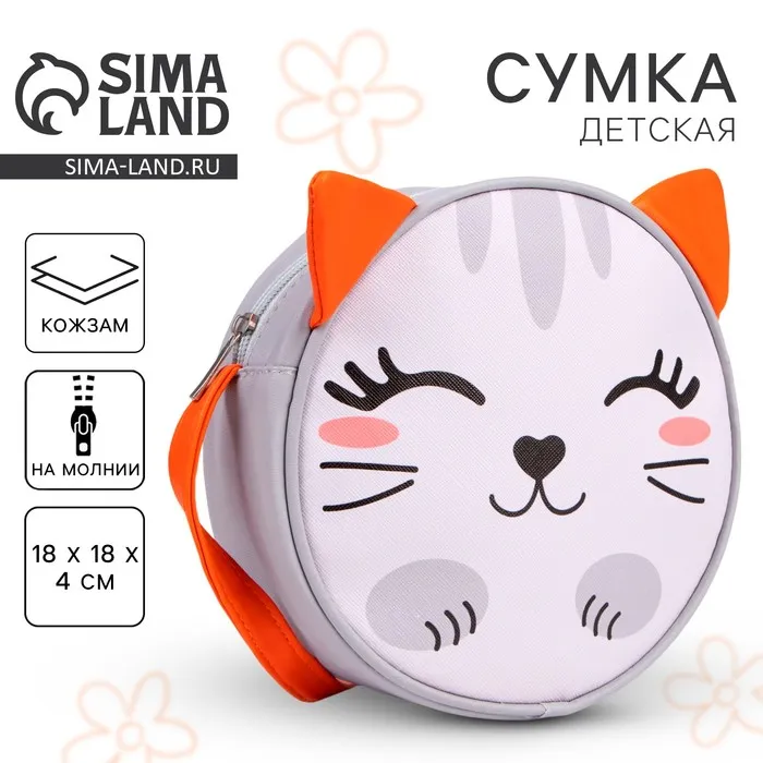 Сумка детская для девочки «Котик», на молнии, серая — Характеристики