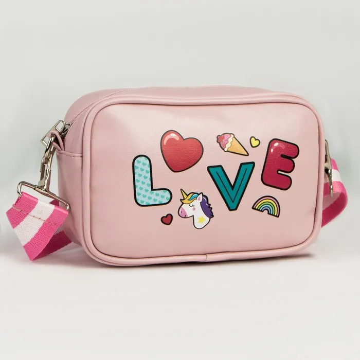 Сумка детская для девочки Love на молнии, розовая — Характеристики