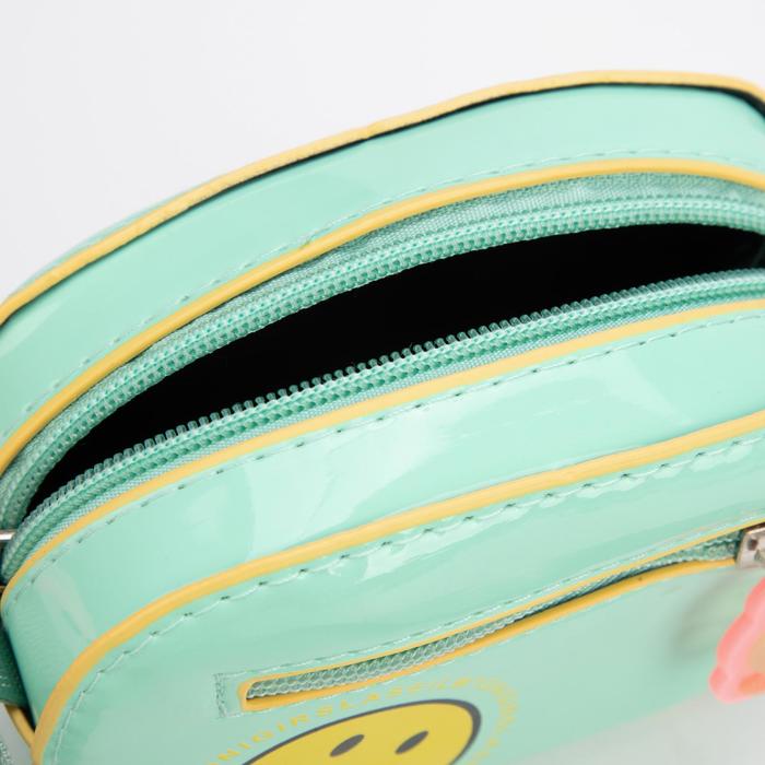 Эта зелёная сумка через плечо станет верной спутницей девочки на прогулках и в поездках. Весёлый смайлик на фронтальной части поднимает настроение, а практичный материал легко очищается после активного дня. Регулируемый ремень позволяет носить через плечо.