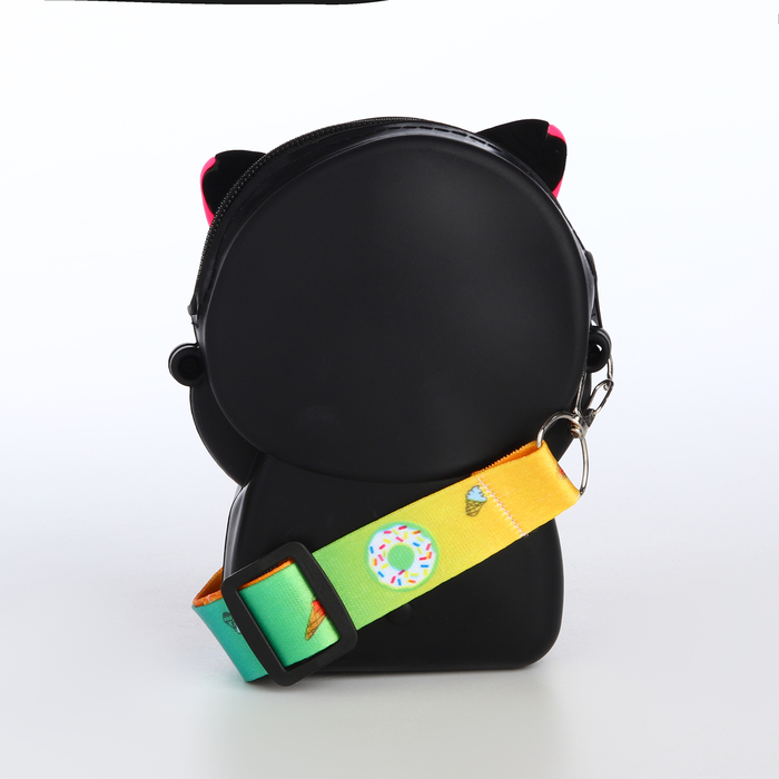 Настоящая находка для юных модниц — стильная черная сумочка POP IT. Этот аксессуар, созданный для девочек от 10 лет, удивит сочетанием трендового дизайна и функциональности. Компактная модель изготовлена из прочного силикона и украшена милым изображением котика. Длинный ремень позволяет носить её на плече, подчеркивая индивидуальный стиль своей владелицы.