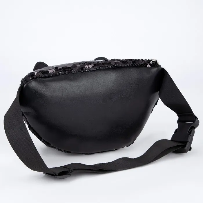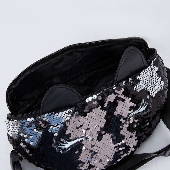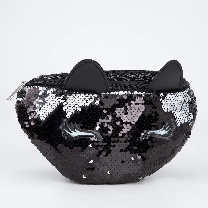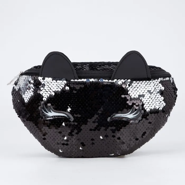 Сумка детская для девочки поясная Black cat, с пайетками, на молнии, чёрная — Характеристики