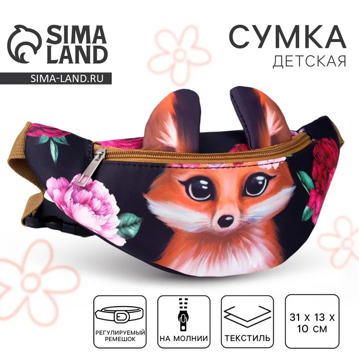 Сумка детская для девочки поясная «Лисёнок», на молнии, наружный карман — Характеристики