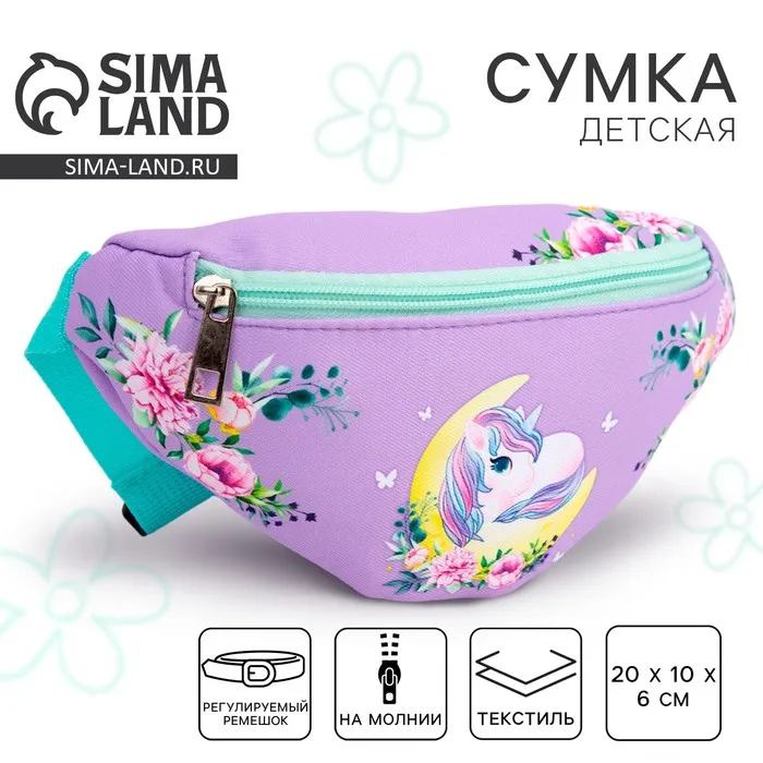 Сумка детская для девочки поясная «Лунный единорог» 20 см х 10 см х 6 см — Характеристики