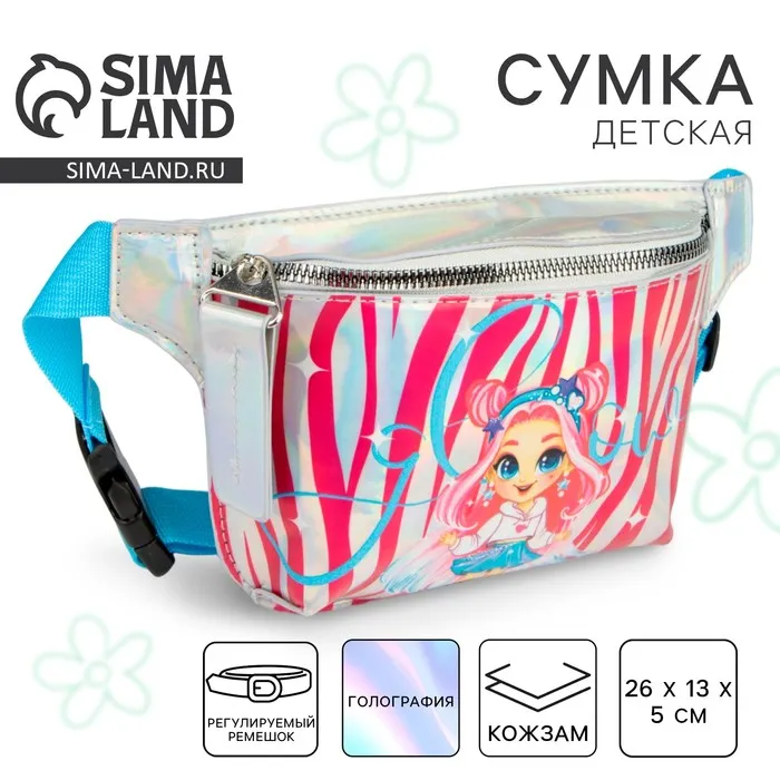 Сумка детская для девочки поясная «Модная девчонка», на молнии, серебристая — Характеристики
