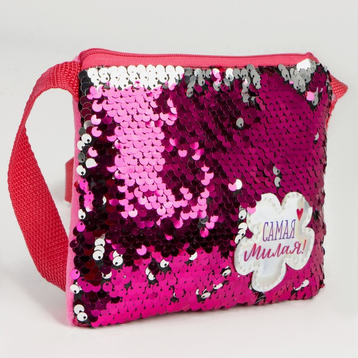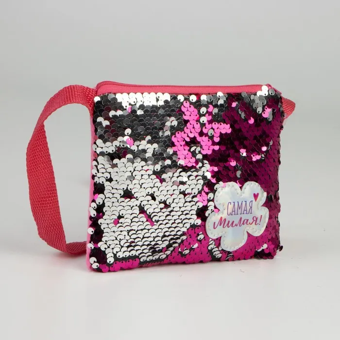Сумка детская для девочки с пайетками «Самая милая», на молнии, розовая, 17.5×0.5×14.5 см — Характеристики