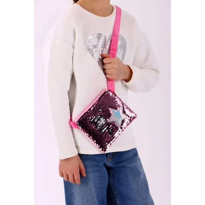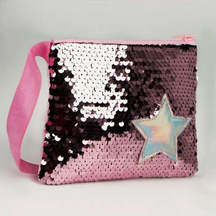 Сумка детская для девочки с пайетками «Звёздочка», на молнии, розовая, 17.5×0.5×14.5 см — Характеристики
