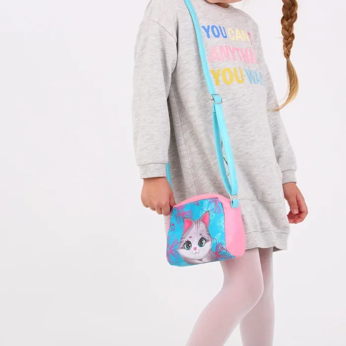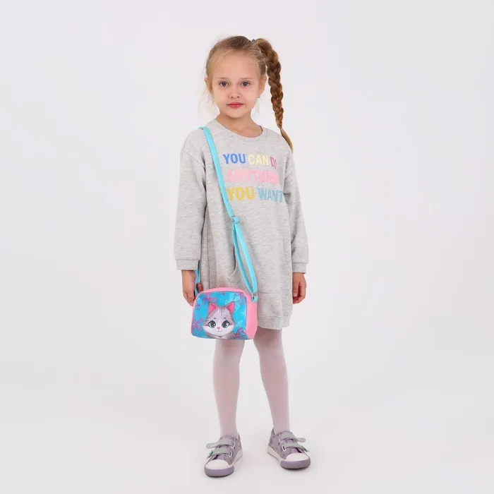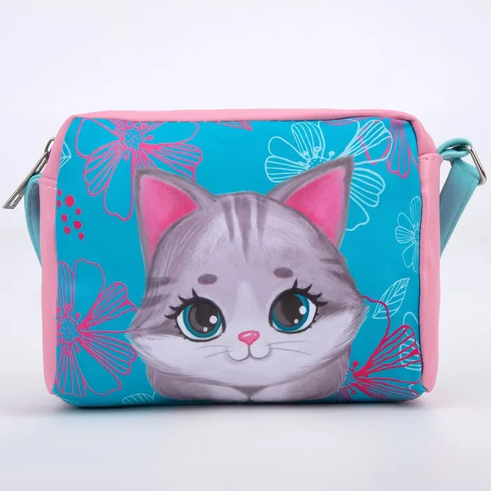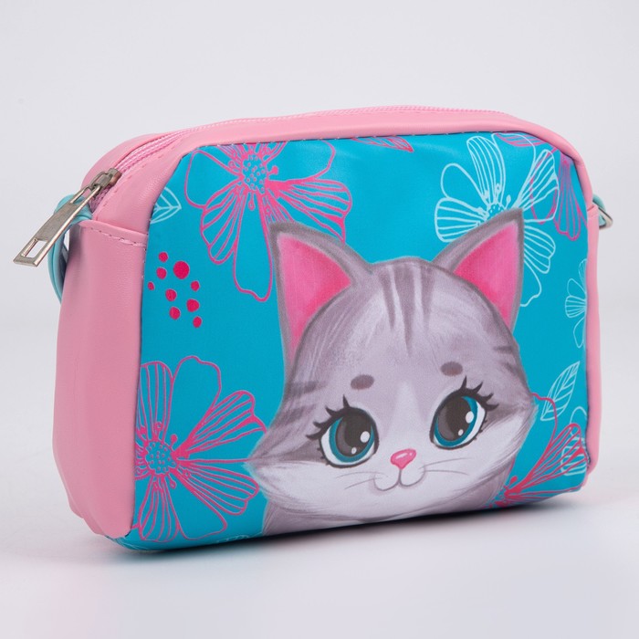 Сумка детская для девочки «Серый котик» из эко-кожи, на ремешке, 15х12х3 см — Характеристики
