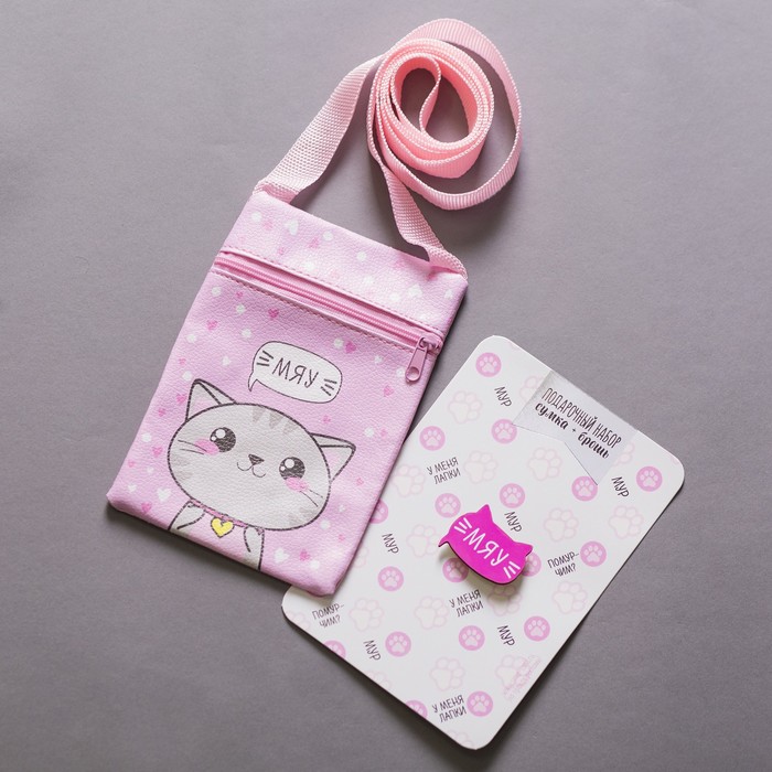 Сумка детская экокожа для девочки «Мяу», брошь — Характеристики