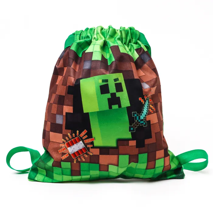 Детская сумка-мешок «Майнкрафт» с мотивами популярной игры станет идеальным аксессуаром для маленьких геймеров, которые ценят удобство и стиль. Яркий зелёно-коричневый дизайн и узнаваемые элементы делают её не просто функциональным предметом, а настоящим спутником для повседневных приключений.