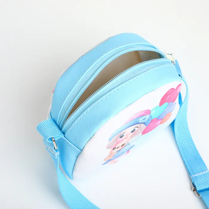 Эта голубая сумка через плечо станет любимым аксессуаром для маленькой модницы. Её компактный размер идеально подходит для первых самостоятельных выходов в гости или на прогулку. Малышка с радостью будет носить в ней свои маленькие сокровища, чувствуя себя совсем взрослой.