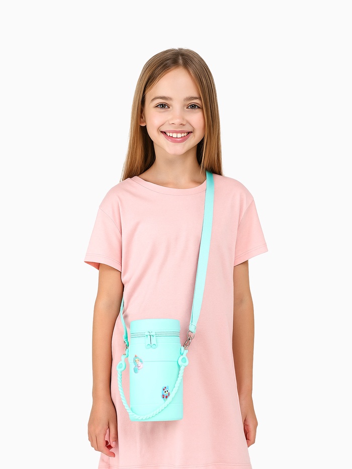Эта детская сумочка станет нежным спутником вашей малышки в её первых открытиях. В ней удобно носить любимые сокровища, мелкие игрушки или личные вещи. Свежий бирюзовый цвет и забавные животные на поверхности создают лёгкое настроение и делают каждую прогулку особенной.