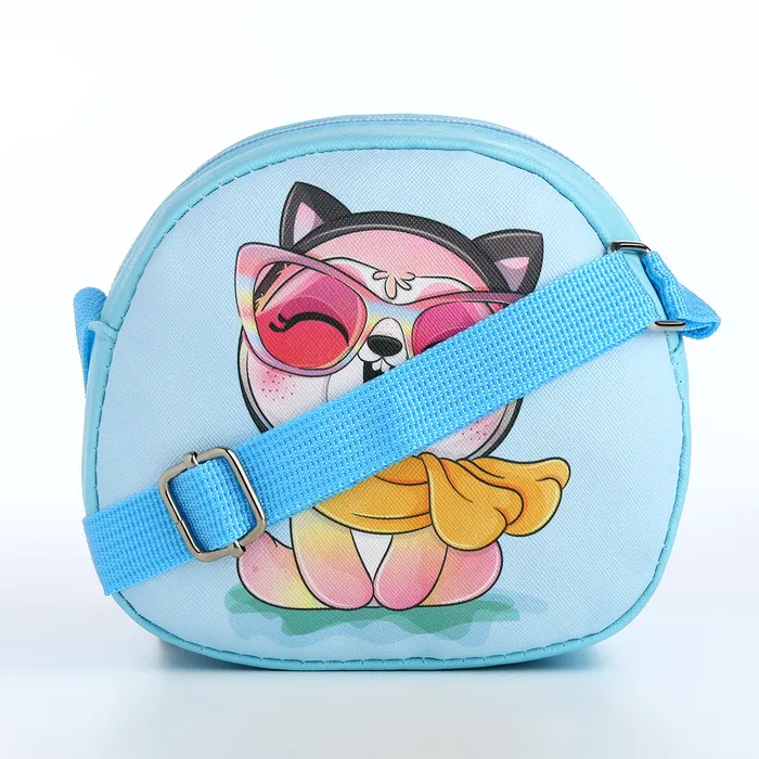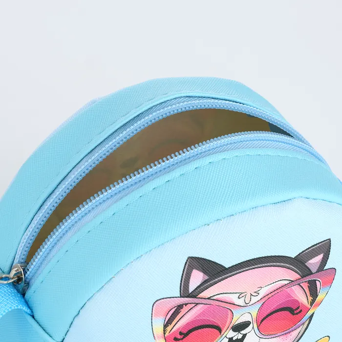 Очаровательная детская сумочка на молнии – это стильный аксессуар для маленьких модниц. Каждый элемент этой мини-сумки продуман до мелочей, чтобы удовлетворить и удивить самым современным дизайном. Привлекательный голубой цвет с изображением любимого котика порадует любую девочку, а удобный регулируемый ремешок обеспечит комфортное ношение.