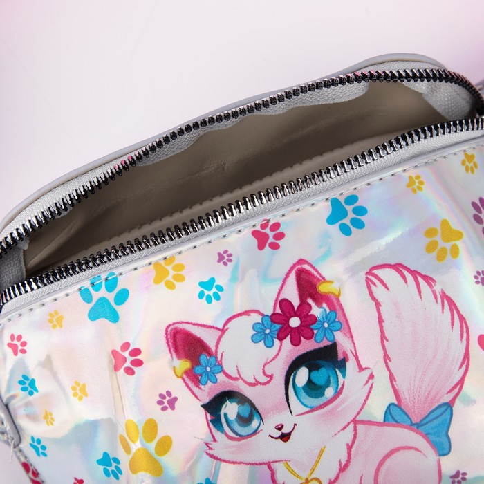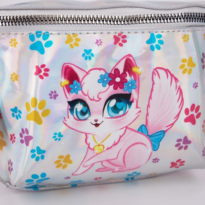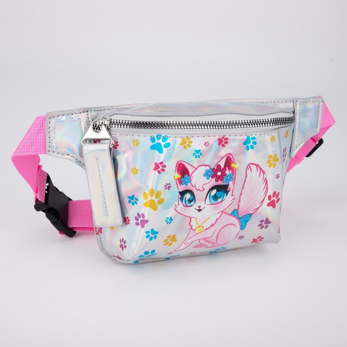 Сумка детская поясная «Котёнок» на молнии, серебристая — Характеристики