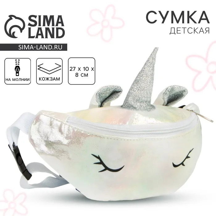 Сумка детская поясная Magic unicorn, на молнии, белая — Характеристики