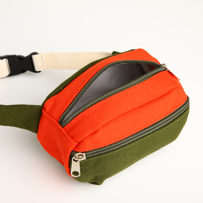 Сумка детская поясная на молнии, наружный карман, цвет хаки/оранжевый — Характеристики