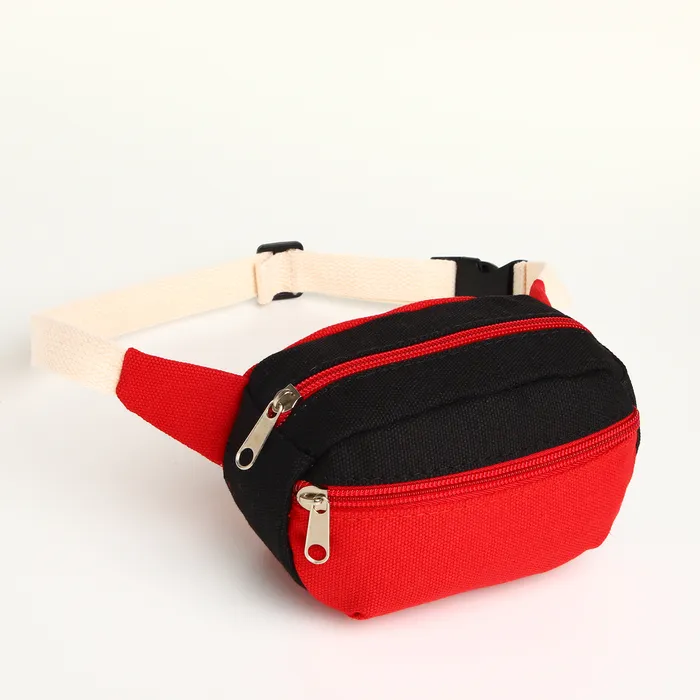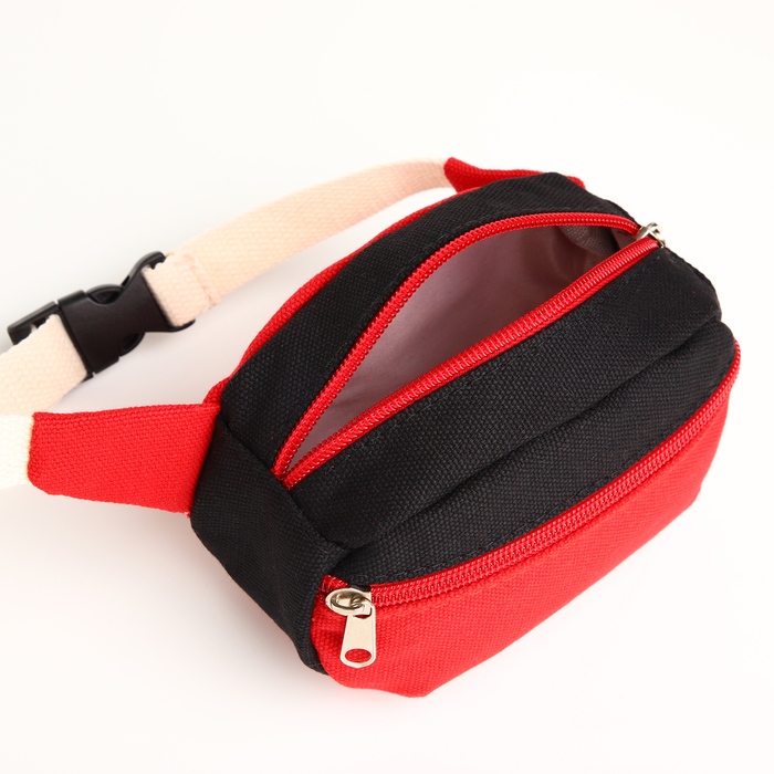 Сумка детская поясная на молнии, наружный карман, цвет красный/чёрный — Характеристики