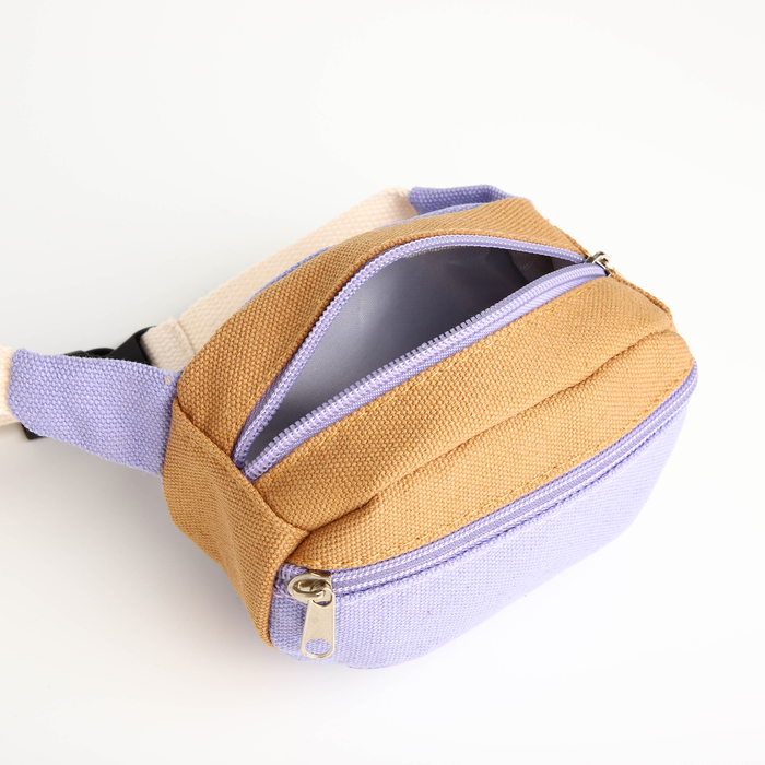 Сумка детская поясная на молнии, наружный карман, цвет сиреневый/бежевый — Характеристики