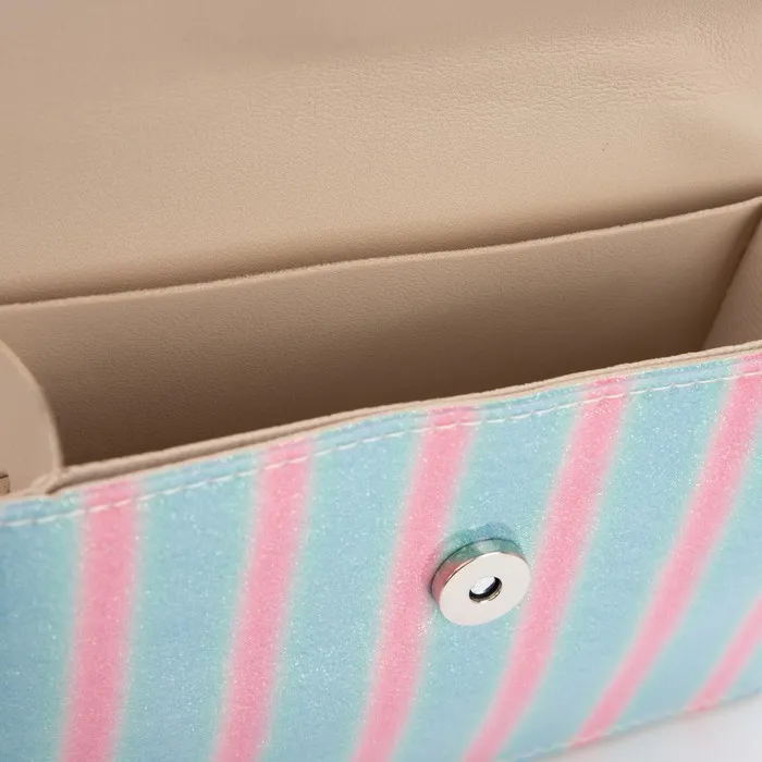 Сумка детская с блестками на кнопке, в полоску, 18,5х5х12,5 см — Характеристики