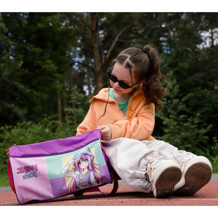 Сумка детская спортивная для девочки «Аниме», 40×21×24 см, сиреневая