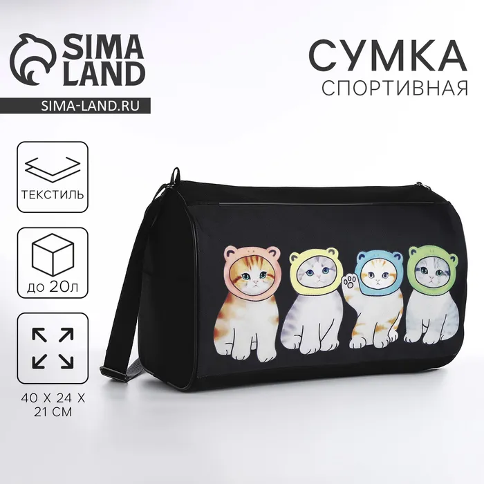 Сумка детская спортивная для девочки «Котята в шапках», 40×24×21, отдел на молнии, чёрный — Характеристики