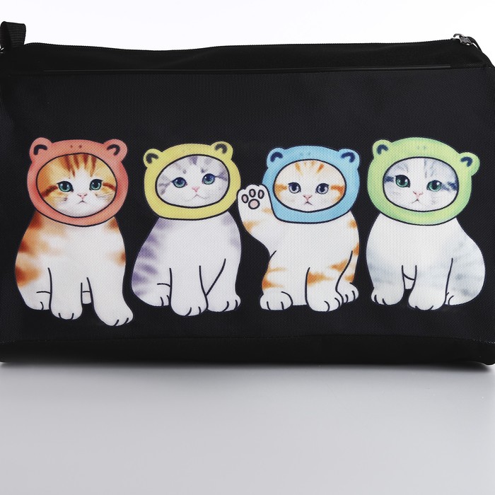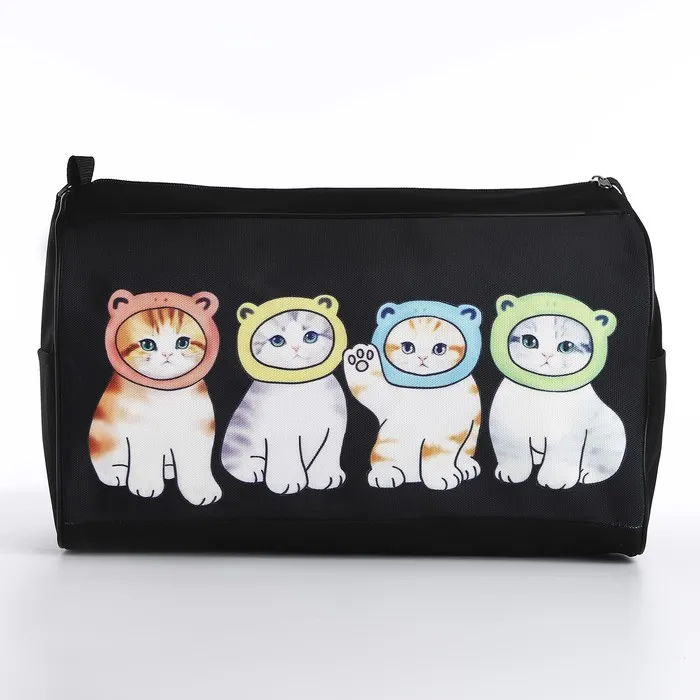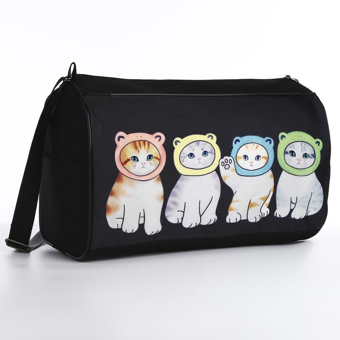 Сумка детская спортивная для девочки «Котята в шапках», 40×24×21, отдел на молнии, чёрный