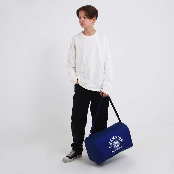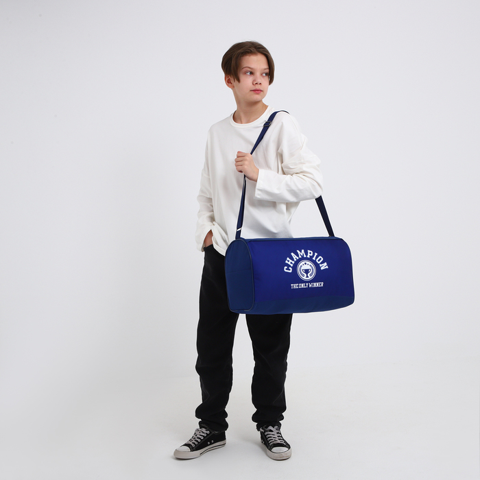Сумка детская спортивная для мальчика «Чемпион», 40х24х21, отд на молнии, синий