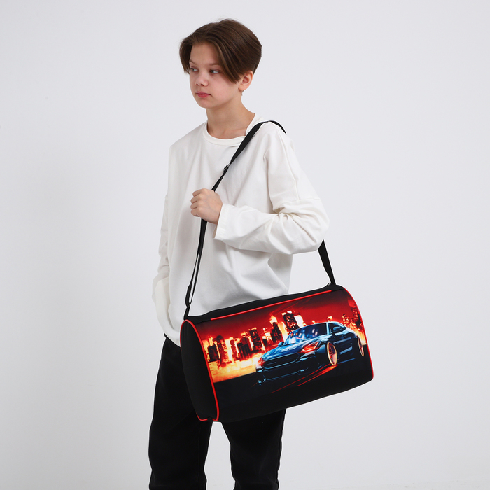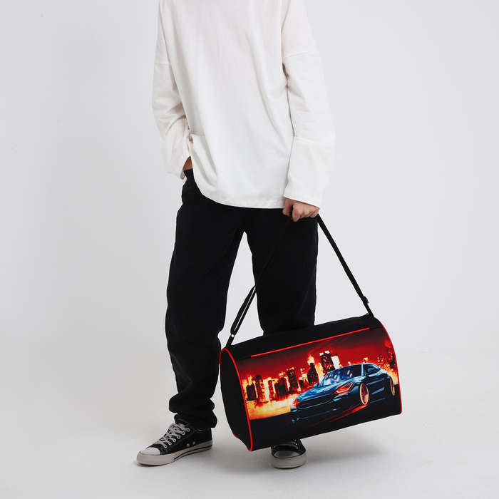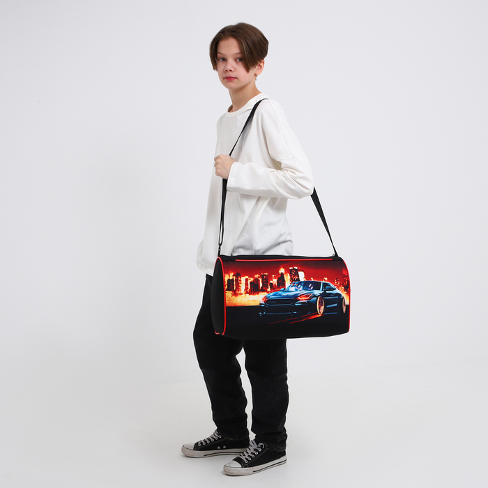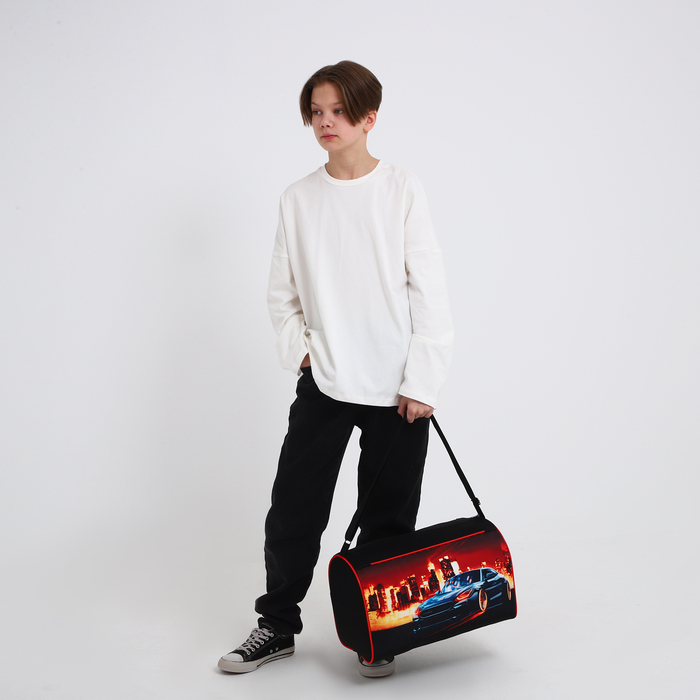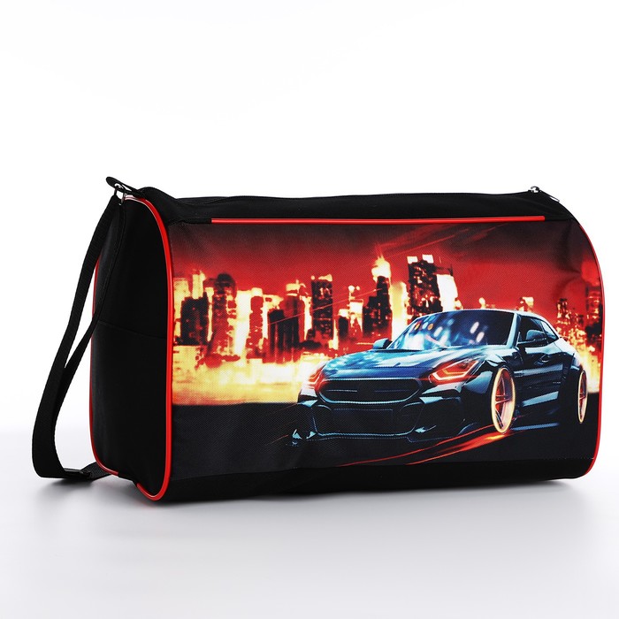 Сумка детская спортивная для мальчика «Крутая тачка», 40×24×21, отдел на молнии, чёрный