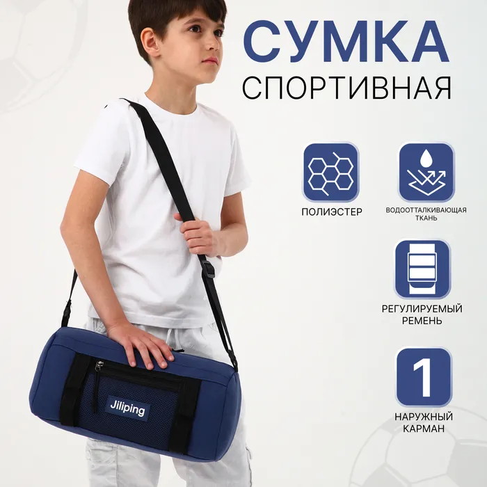 Сумка детская спортивная на молнии для мальчика, наружный карман, регулируемый ремень, цвет синий — Характеристики