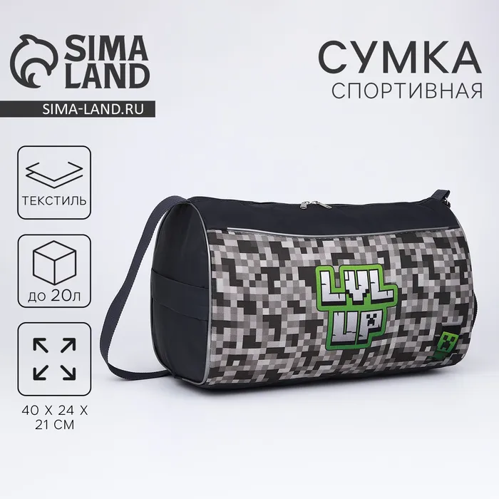 Сумка детская спортивная «Пиксели», 40×21×24 см, серая — Характеристики