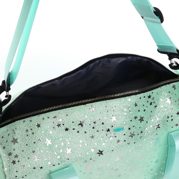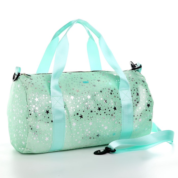 Сумка детская спортивная плюшевая для девочки с блестками «Звёзды», мятный