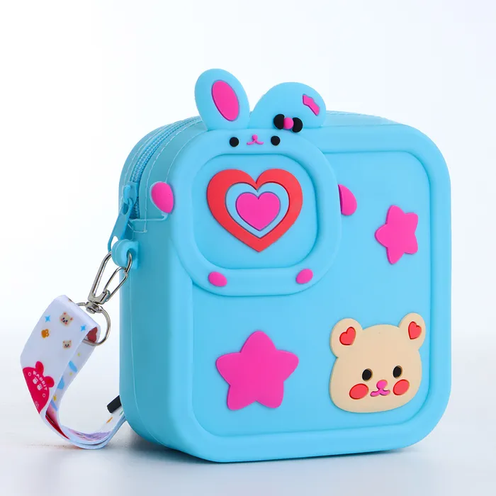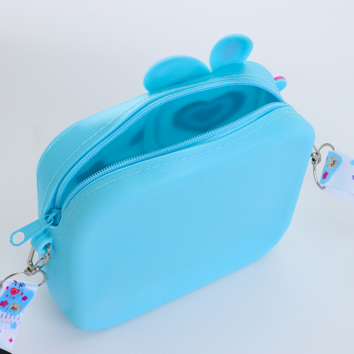 Милая голубая сумочка для девочки станет стильным аксессуаром для юной модницы. Этот детский клатч выполнен из мягкого и безопасного силикона и украшен изображением медведя, привнося в образ игривый и дружелюбный акцент. Маленькая и удобная, сумочка легко закрывается на молнию, надежно хранит все детские секреты и сокровища.