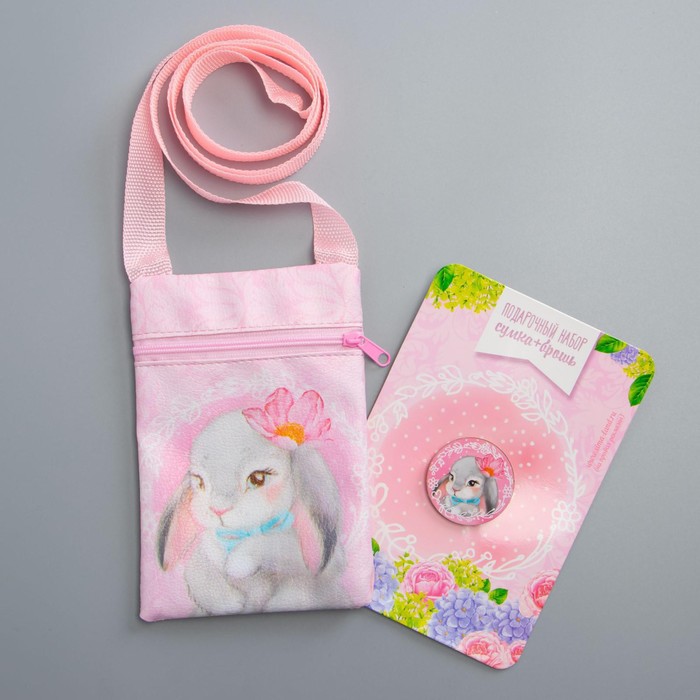 Сумка детская «Зайка», экокожа, деревянная брошь — Характеристики
