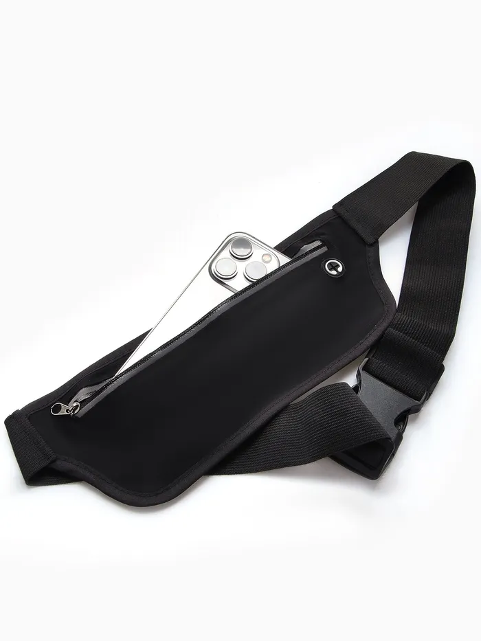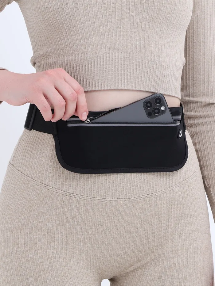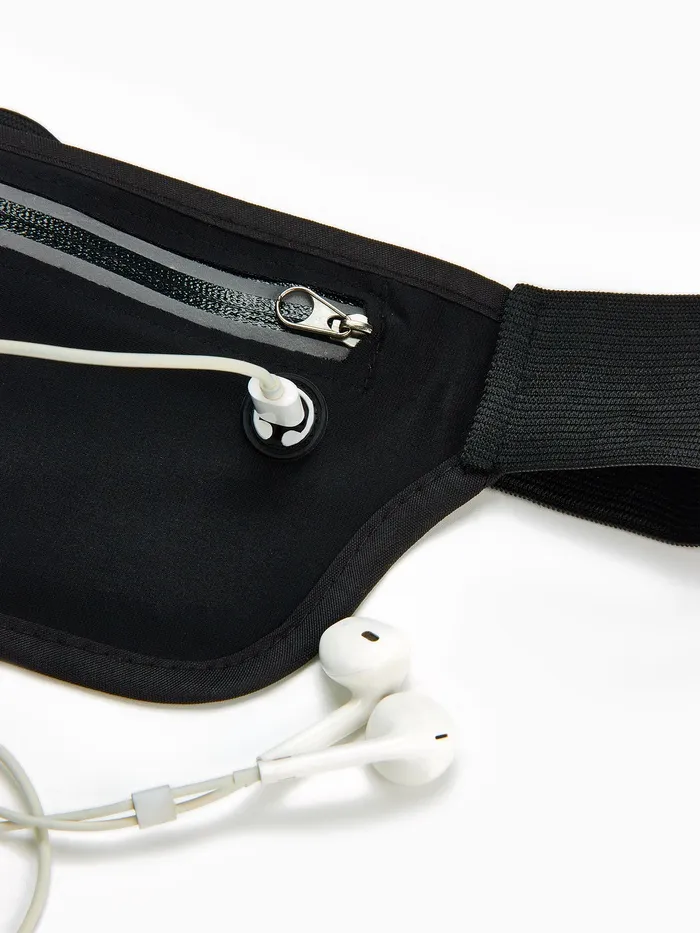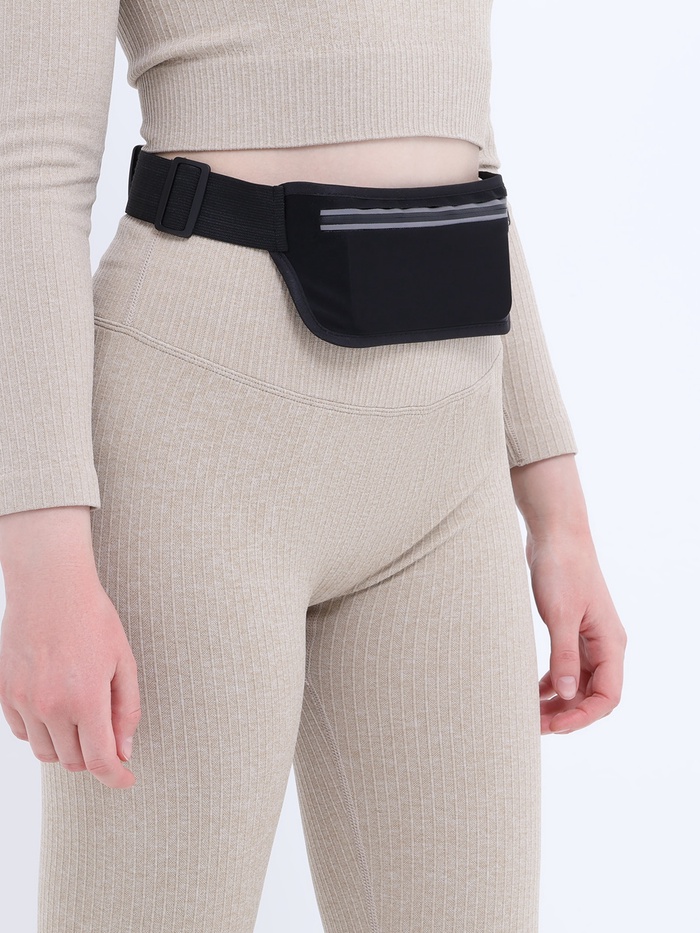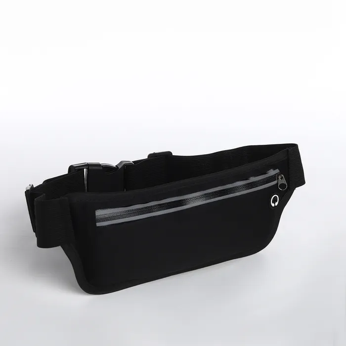Сумка для бега на пояс, со светоотражающими элементами, с отверстием для наушников, 24×0.3×10 см, чёрная — Характеристики