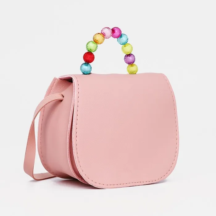 Сумка для девочки COLOR на длинном ремешке, ручка из бусин, на магните, розовая — Характеристики