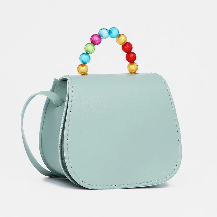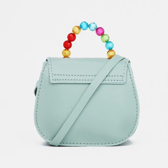 Сумка для девочки COLOR на длинном ремешке, ручка из бусин, на магните, зелёная — Характеристики