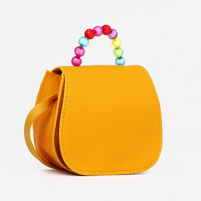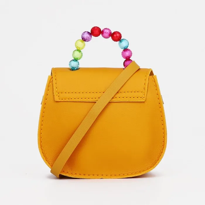 Сумка для девочки COLOR на длинном ремешке, ручка из бусин, на магните, жёлтая — Характеристики