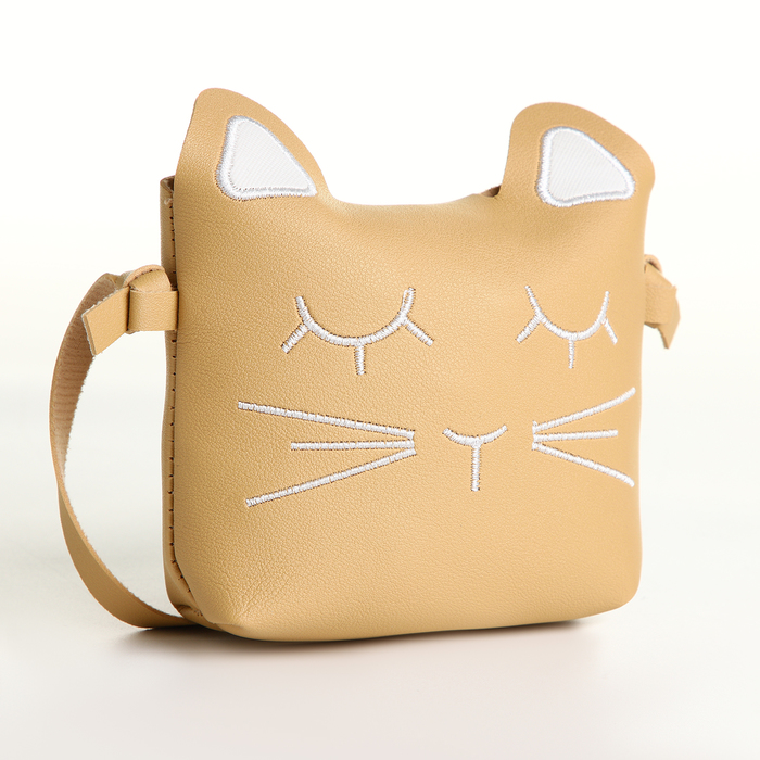 Сумка для девочки «Кошка», на магните, с длинным ремешком, бежевая