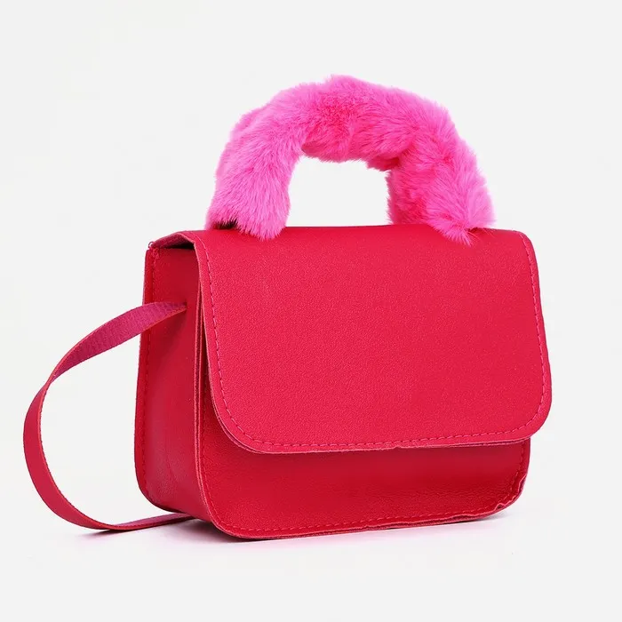 Сумка для девочки, ручка из меха, на магните, малиновая — Характеристики