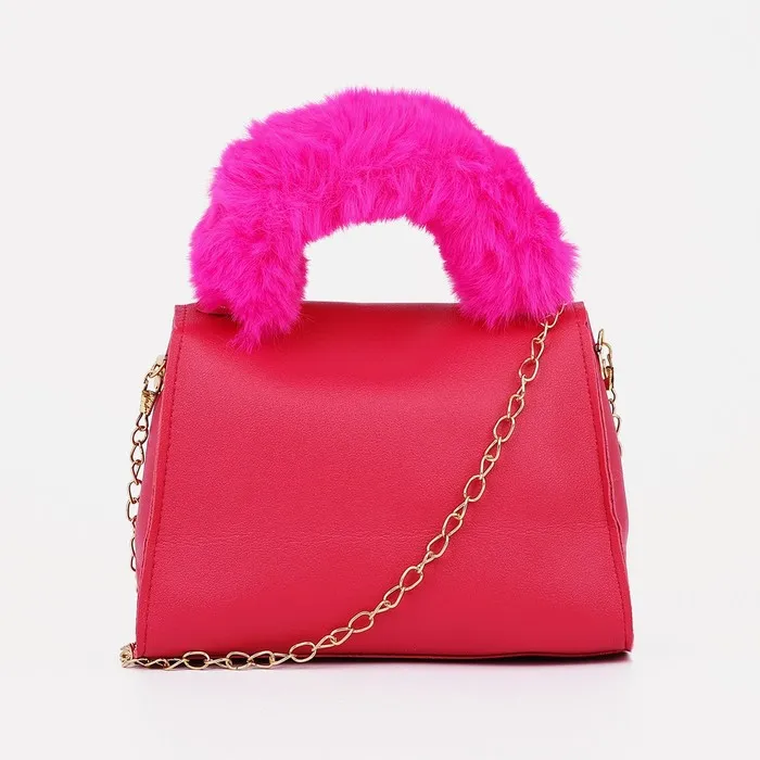Сумка для девочки, с меховой ручкой, маленькая, на магните, малиновая — Характеристики