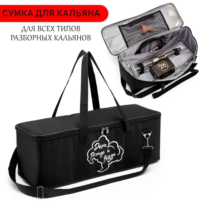 Сумка для кальяна "Дыми всегда и везде", 21 х 60 х 20 см, чёрная — Характеристики