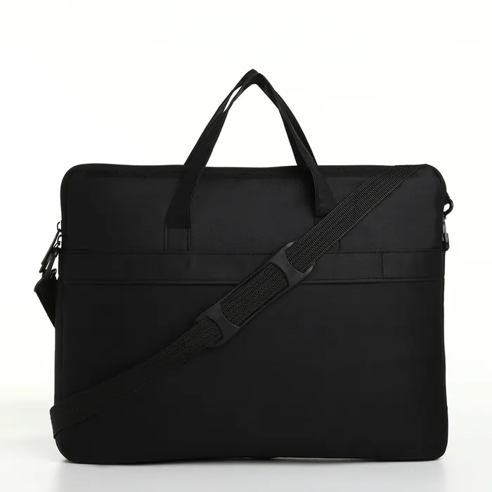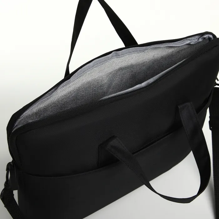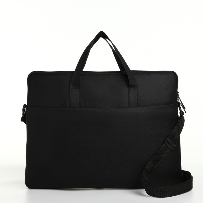 Сумка для ноутбука на молнии, наружный карман, держатель для чемодана, длинный ремень, 37.5×3×27.5 см, чёрная — Характеристики
